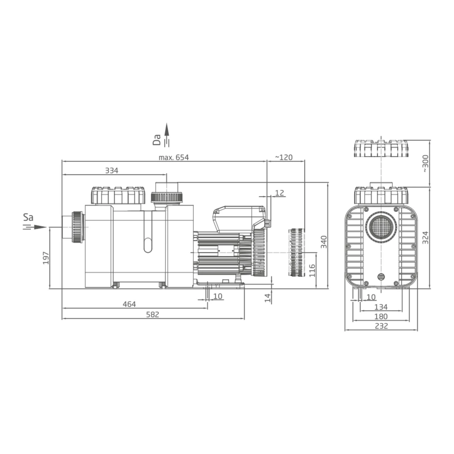 Schwimmbadwasser-Umwälzung in Filteranlagen, aufstellbar jeweils max. 3 m oberhalb oder unterhalb des Wasserniveaus.