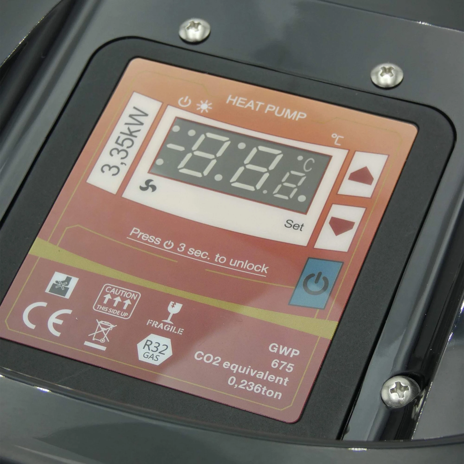 Die Wärmepumpe ist aus einem robusten und zeitlosen Metall-Gehäuse in Anthrazit gefertigt. Der Titan-Wärmetauscher ist resistent gegen Schwimmbadchemikalien und ist somit für Chlor- und Salzwasserbecken geeignet.
