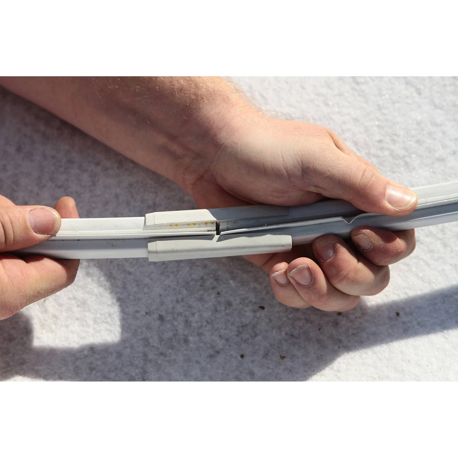 Die Innenhülle besteht aus UV-stabilisierter PVC-Folie, ist 0,3 mm stark und hat die Farbe blau. Zudem ist die Hülle reißfest und kältebeständig und dadurch extrem langlebig. Sie ist für den jeweiligen Pool passend geschnitten und hochfrequenzverschweißt. Die Poolfolie wird als Overlap Variante/Folie geliefert. Hier wird die Folie einfach über den Stahlmantel gelegt und durch den Handlauf festgeklemmt.