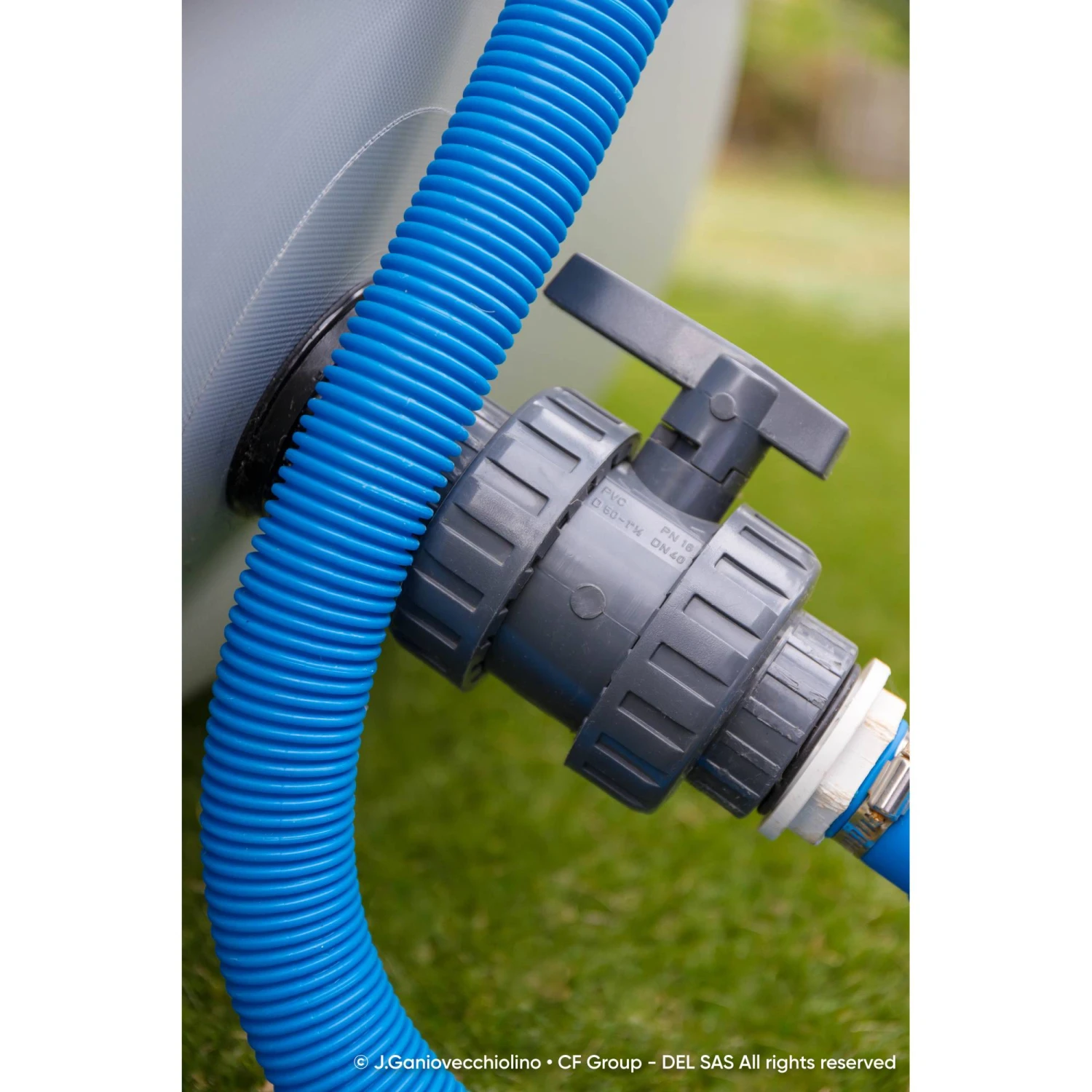 Zum Zodiac Original-Kit gehört ein Schwimmbecken, eine Sicherheitsleiter aus Edelstahl, ein Sandfilter, eine Filterpumpe, ein oder zwei Schwimmskimmer (je nach Größe des Pools), eine elektrische Aufblasvorrichtung, ein Satz Schlauchverbindungen mit Ø 38 mm und eine Montageanleitung.